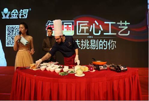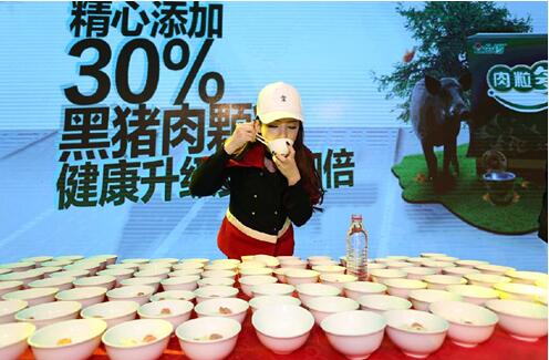 在現(xiàn)場,汪涵更是以無淀粉產(chǎn)品代言人的身份和現(xiàn)場經(jīng)銷商進行了互動,《豬豬俠》人偶豬豬和菲菲也以金鑼哈啰伙伴系列產(chǎn)品代言人的身份進行了萌翻眾人的表演,《畫江湖之不良人》主創(chuàng)團隊則以cosplay的形象出現(xiàn)在舞臺上,帶來了一場如夢似幻的視覺盛宴。而YY當(dāng)紅大胃王女主播袁瑞彤PK三壯漢,10分鐘吃下70碗金鑼肉粒多拌面更是將現(xiàn)場氣氛推向高潮;外籍大廚阿爾伯特用德斯克制作三道色香味俱全的德式美食,也讓臺下經(jīng)銷商欲罷不能。這些豐富的代言形式,讓在場的經(jīng)銷商全部耳目一新,留下了深刻的品牌印象。也正是在代言人的推動下,短短兩個小時訂貨量便突破了1.15億。